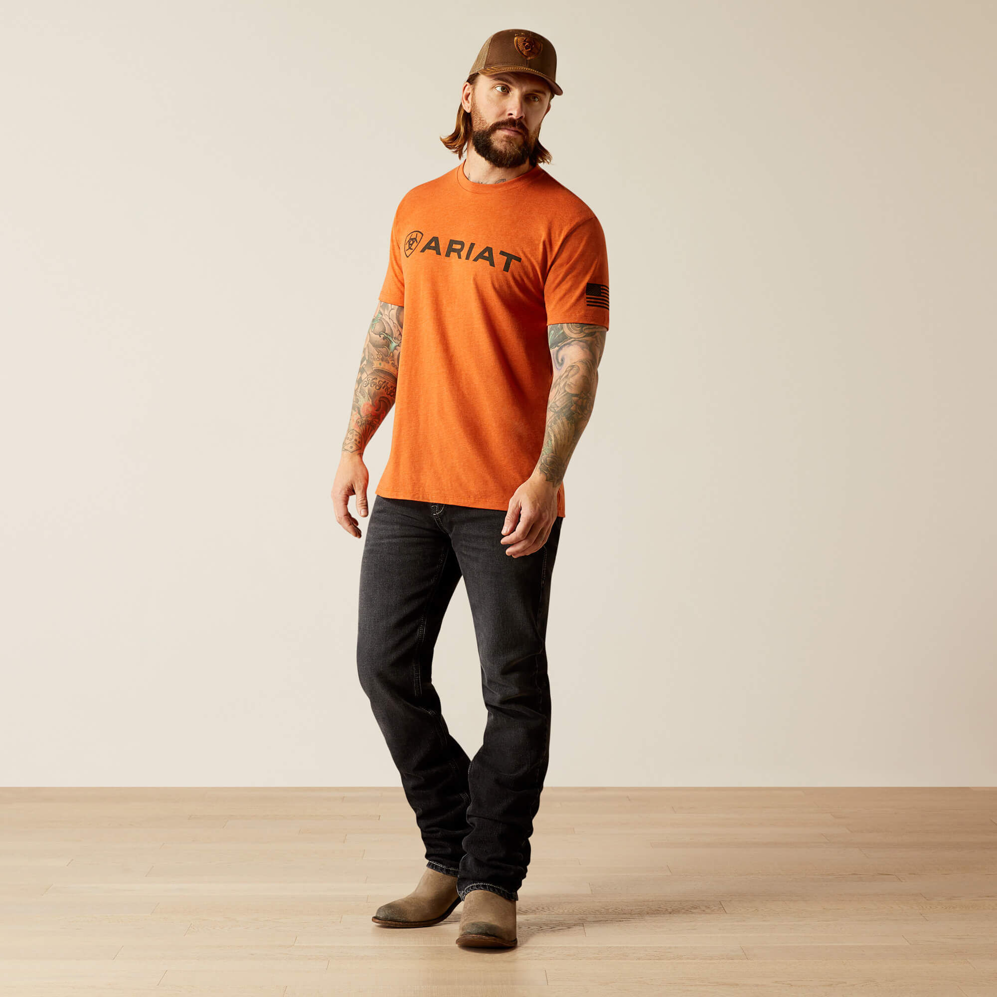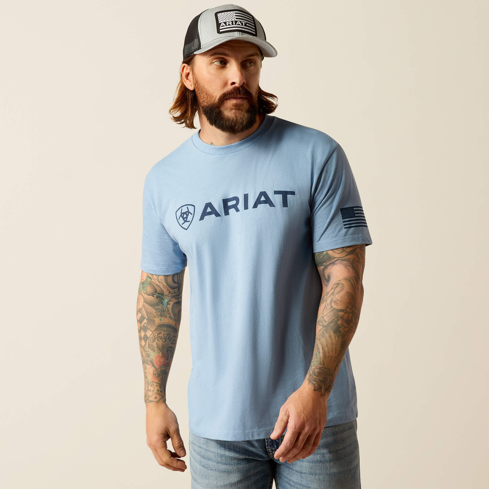 Rep your favorite brand with this super-soft graphic tee. Featuring an Ariat logo across the chest and a flag graphic on the arm, it’s an easy standby that takes the guesswork out of what to wear.