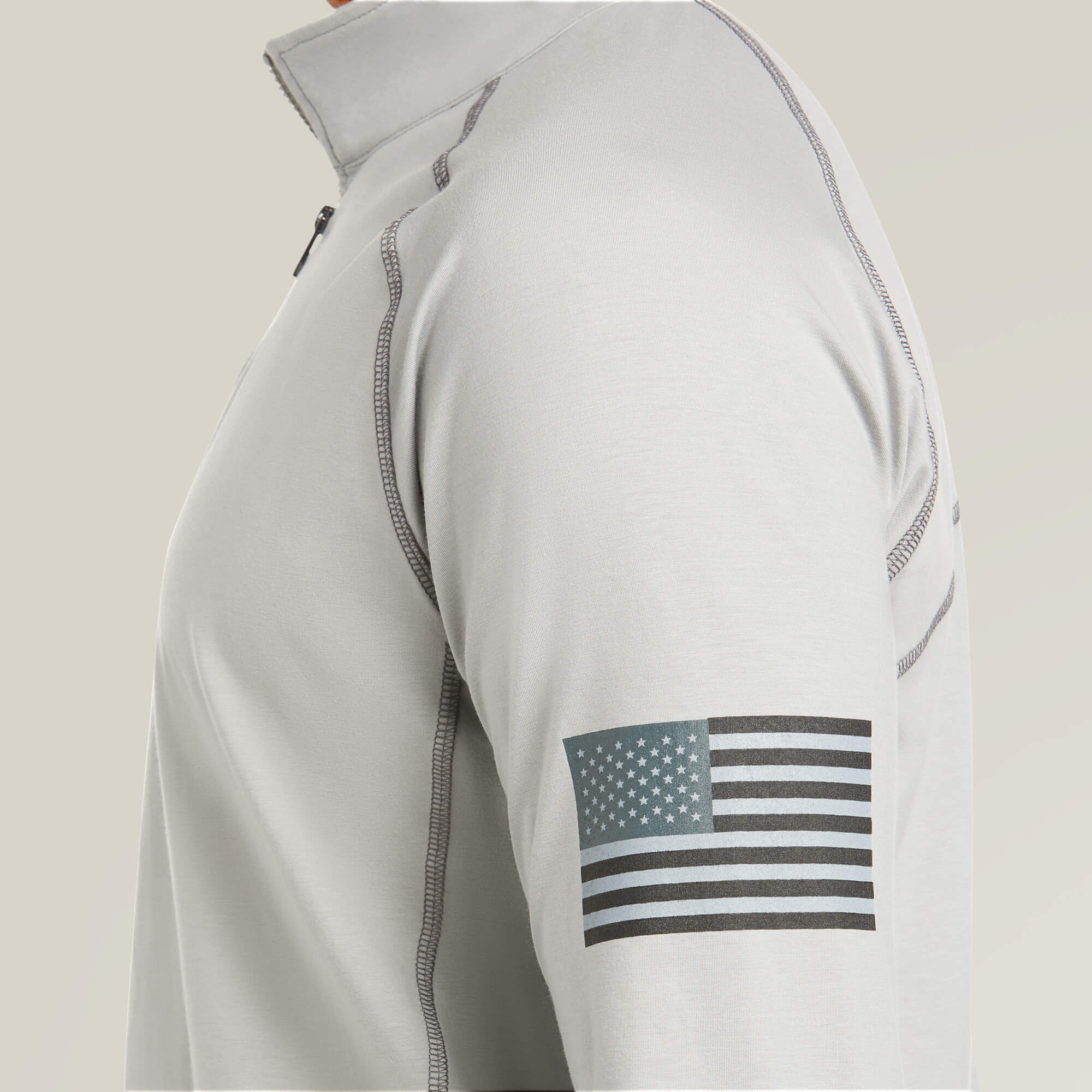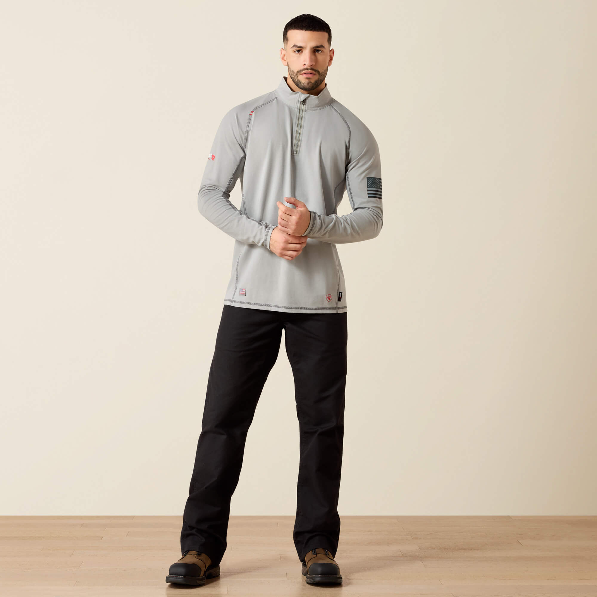 Crafted from ultra-soft, flame-resistant knit fabric, this 1/4-zip work shirt keeps you covered and protected on and off the jobsite. Durable and comfortable, it has an American Flag graphic on the sleeve for patriotic pride.