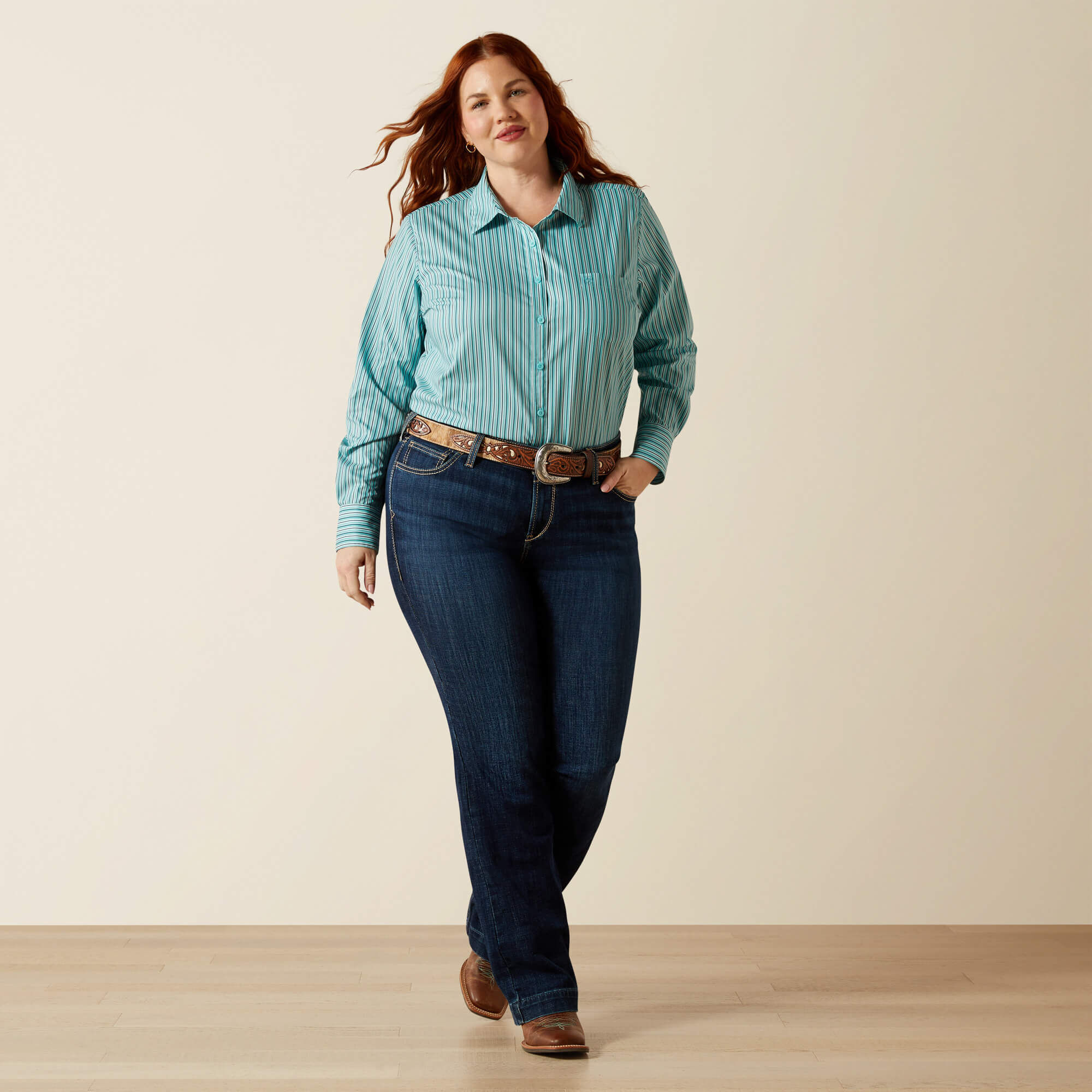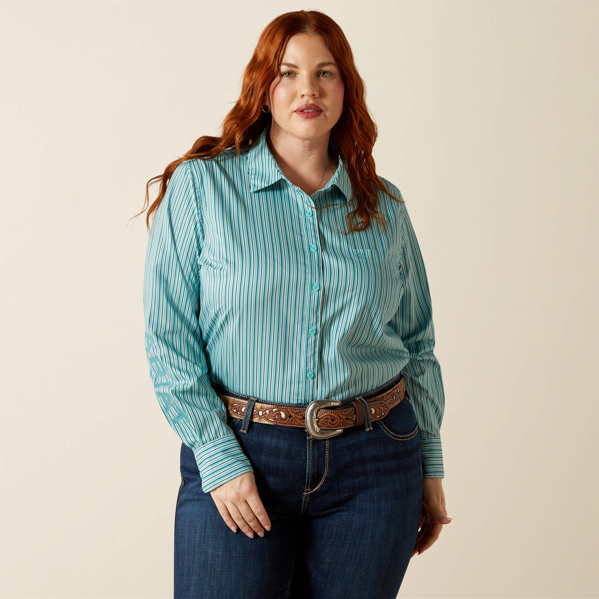 Rep Team Ariat in our athlete-tested, arena-proven shirt. It’s engineered with an easy-care performance fabric, which stretches with your every move and looks polished right out of the wash. Add UPF sun protection and a flattering, saddle-ready fit, and you’ve got a shirt that can keep up.
