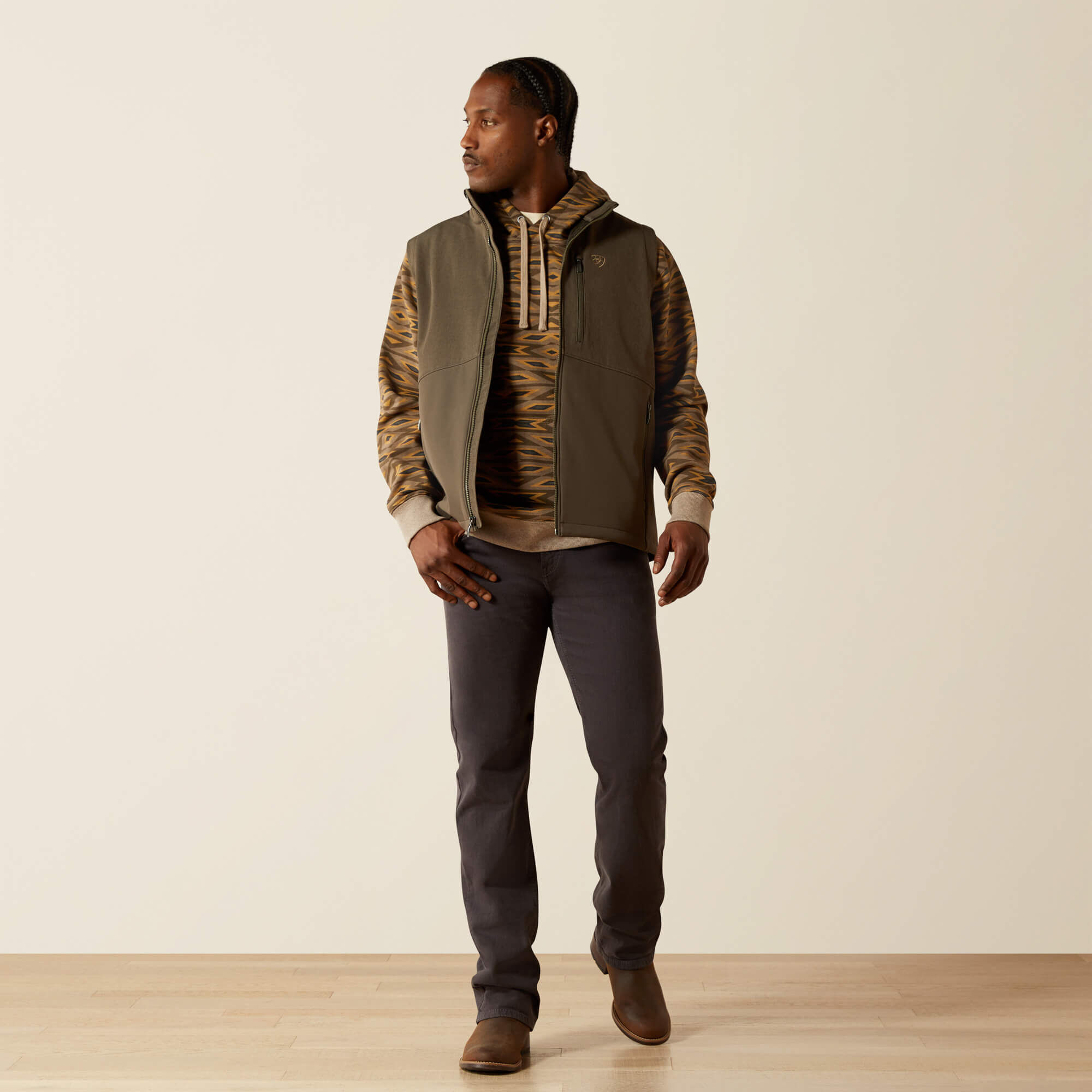 An Ariat icon since 2003, our softshells are a closet staple. They’re warm, lightweight, and water resistant—and have plenty of stretch to keep you moving. With a sleek design and an Ariat logo on the back, this vest is versatile enough to wear just about anywhere.