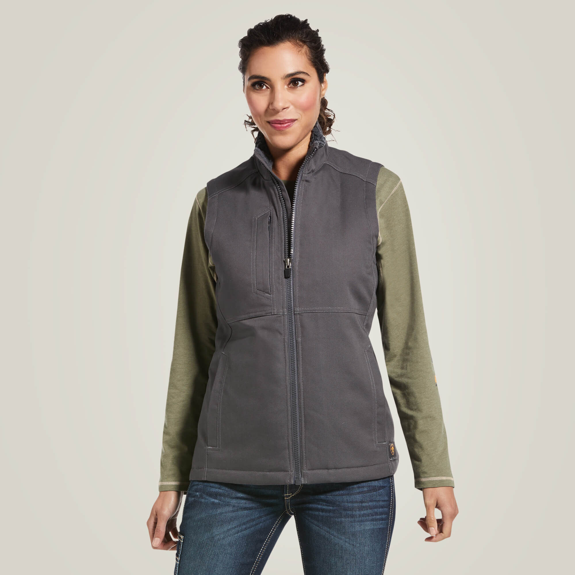 - Relaxed through the body, with a longer hem that stays tucked-in on and off the job